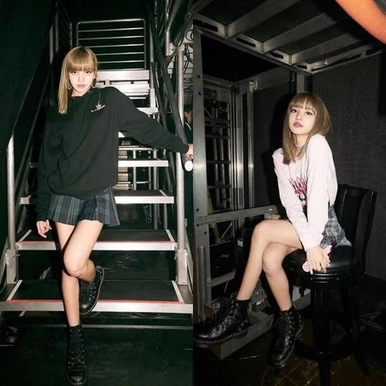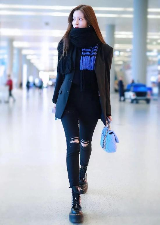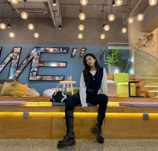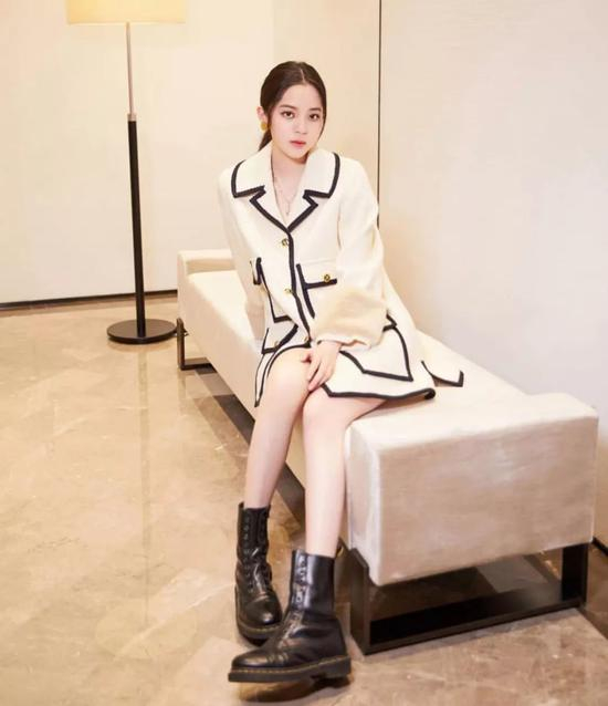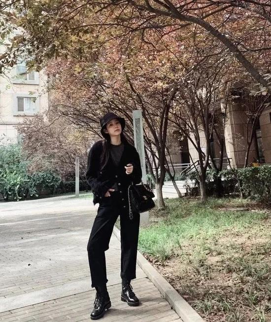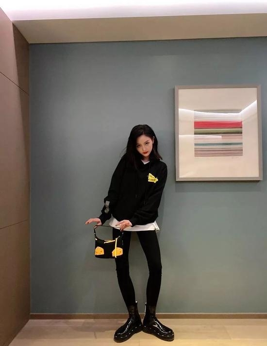 看看宋妍霏的穿搭,简直就是一本马丁靴穿搭指南,各种长度,各种款式的十级马丁靴爱好者。