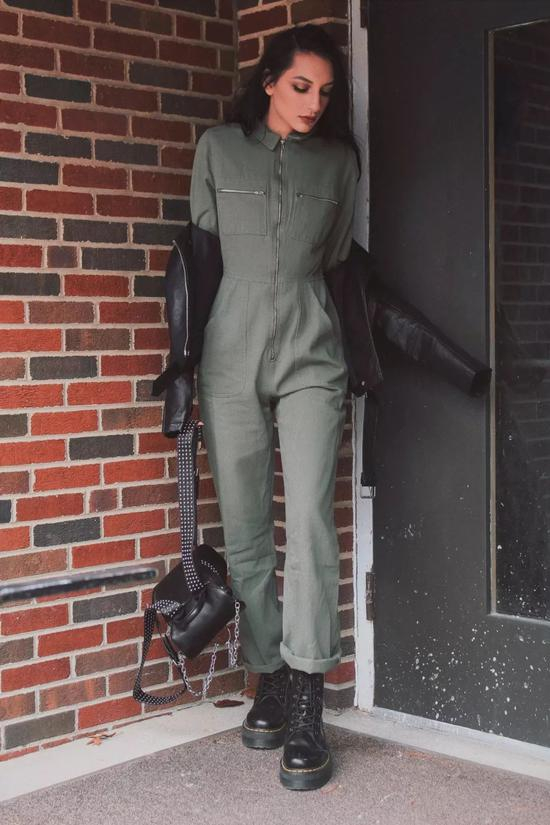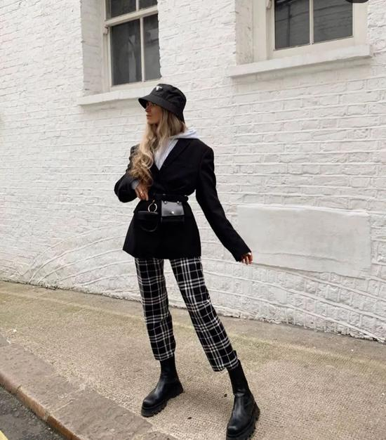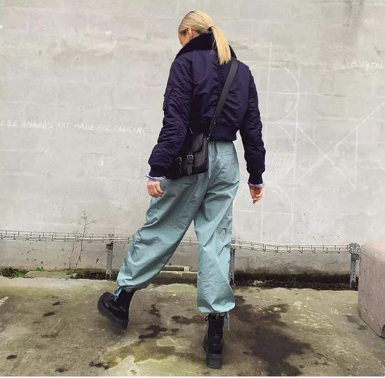 束脚工装裤搭配马丁靴是今年最IN的搭配组合了,既显瘦又酷,effortless的休闲慵懒感十足,帅到没有男人什么事儿。