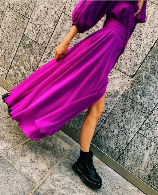 丝绸质感、碎花、蕾丝……女人味十足的元素配马丁靴,撩起裙边的时候露出一双帅气的马丁靴,别提多带感了。