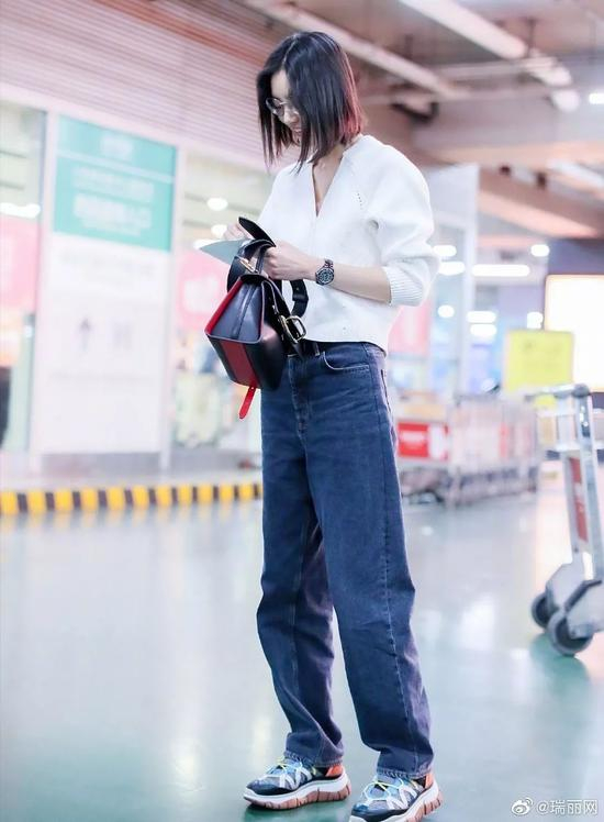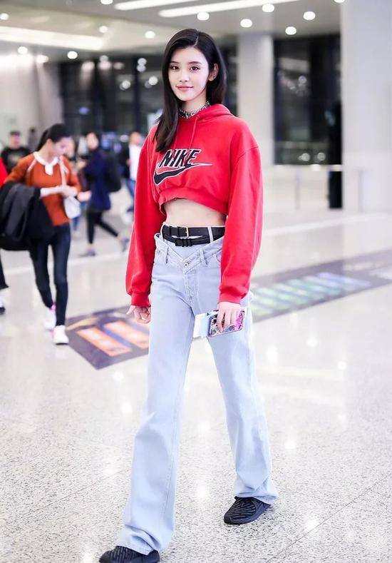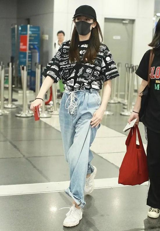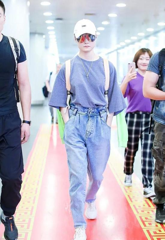 除了姐之外,其他女明星对高腰裤的爱也显而易见。超帅的春春选择高腰牛仔搭廓形T恤,机场最靓的仔非你莫属。