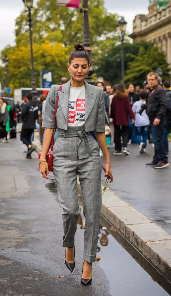 穿一整套的搭配只有一个法则,上短下长。短TOP吊带or上衣瑞酱就不用多说,如果是西装+高腰裤,那么一定要在西装里穿一件短款,上衣or吊带都可以,不但显得超A还能掩盖不完美身材~