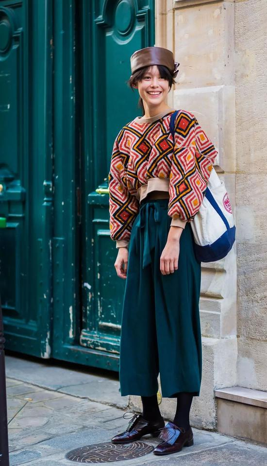落肩款短TOP和高腰阔腿也很搭,项链和帽子成为点睛之笔,想要甜美or酷女孩都可以!