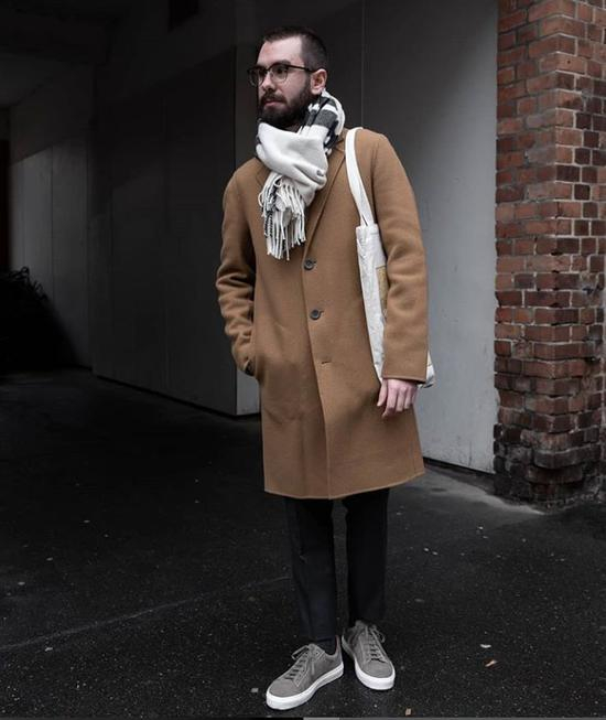 而服饰配件永远和造型都有着密切的联系,帆布的托特包和运动鞋让造型变得青春时髦起来,如果想打造出绅士的商务范就可以搭配皮鞋和公文包,这样造型的正式感就会马上呈现出来。卡其色系的大衣是打造经典时尚风的热门单品,能让造型展现出高雅和大方,搭配深色的裤子造型显得更沉稳一些。