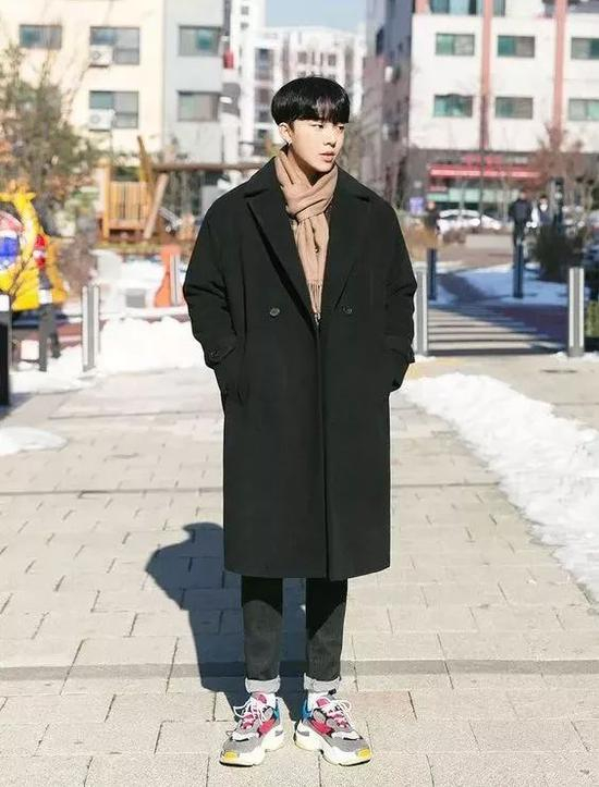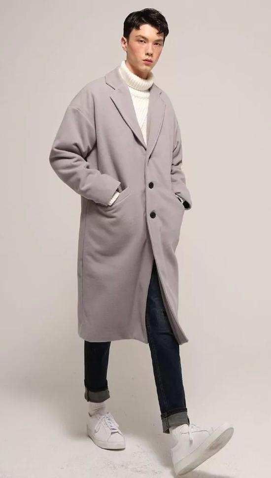 过瘦的伙伴穿着宽松版型的大衣还可以掩盖一下身材过于单薄的问题,内搭高领毛衣和夹克还能营造出层次感让造型丰富不少。