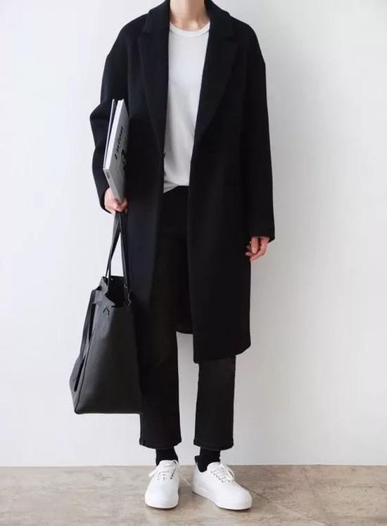 内搭黑色调能搭配所有颜色的大衣,这也体现了黑色调的百搭性,这时造型同样可以通过裤子的款式和鞋子的风格让造型变得不一样。而且内搭统一色调的时候能造型的整体感变得更好,穿起大衣时也会得心应手。
