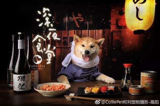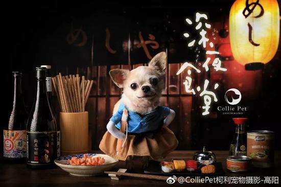 和走自然户外风的白叔不同,在Collie Pet柯利宠物摄影的主理人高阳的镜头下,可以看到很多有趣的‘创意大片’。比如这组以‘深夜食堂’为主题的大片,让各位毛孩子都变身食堂老板or食客,有趣又可爱~