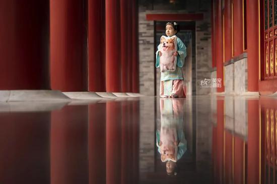 去年大约11月的时候吧,他们早就约好了要在一个像故宫的场景里拍照,结果Billy却提前回汪星了,它的主人没有取消这次拍摄,而是带了一个和Billy一模一样、1:1的抱枕来拍摄。她说:无论如何,在最后还是想让Billy当一次“小皇帝”。
