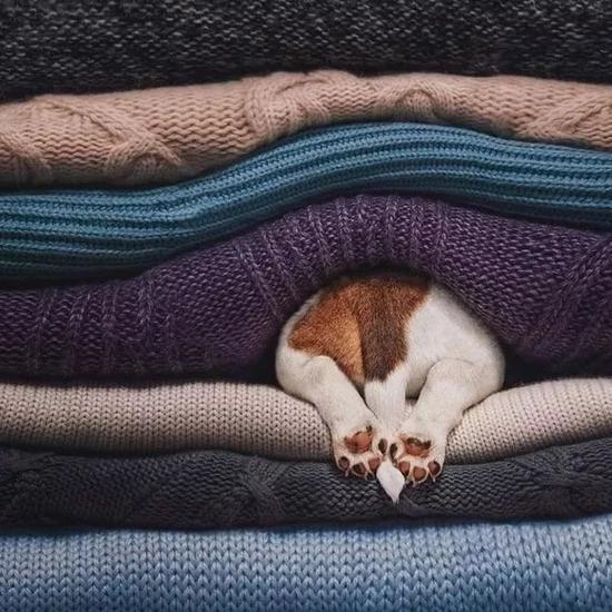 你刚晒过太阳的毛衣堆,可以是毛孩子们捉迷藏的乐园。