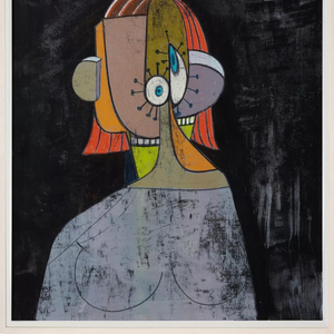 这个系列见证了康多舍弃油彩,改用压克力彩、炭笔及粉彩等复合媒材的风格转变,因而得名。本作气氛沉稳自若、流露毕加索的风格。值得注意的是,素描油画系列与康多在2000年代起创作的肖像作品并不相同——后者往往刻画了形象怪异的人物,从黑色背景中渐渐浮现。在这些画作中,康多以浮夸不羁的手法重塑人体形象,如艺术家本人所言,它们‘关乎线条与色彩的自由,(使)素描与油画的特征变得模糊,美感与怪诞并行其中。它们亦表现出人物的即兴状态及他们的意识。’