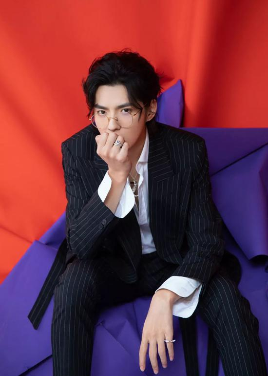黑色细条纹廓形西装率性利落,搭配天蝎项链相映成趣,笔挺的材质勾勒出挺拔身形,在金丝眼镜的加持下更显禁欲迷人,时尚sense满分的吴亦凡谁能不心动?