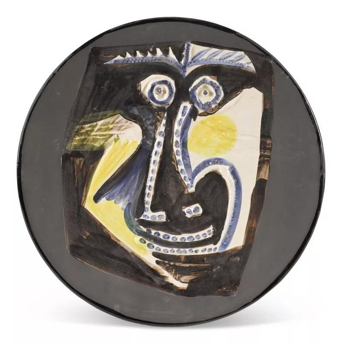 毕加索在晚年潜心钻研陶瓷艺术,借着陶艺创作再一次回顾了他在整个绘画及版画艺术生涯中孜孜探索的主题与图像。毕加索早期学院派作品的追慕者,或会垂青表面光滑、轮廓简约的陶瓷作品;而立体派爱好者,则可能会喜欢轻快活泼的作品,如《肖像》。