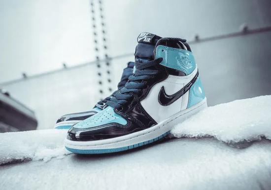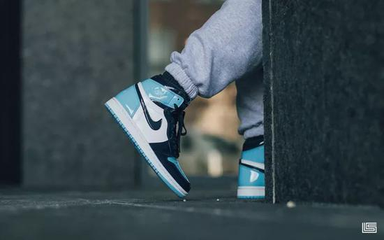 整双鞋融合芝加哥与北卡蓝两款配色方案,鞋面采用豪华的漆皮材质打造,无论是静物还是上脚都有不错效果。