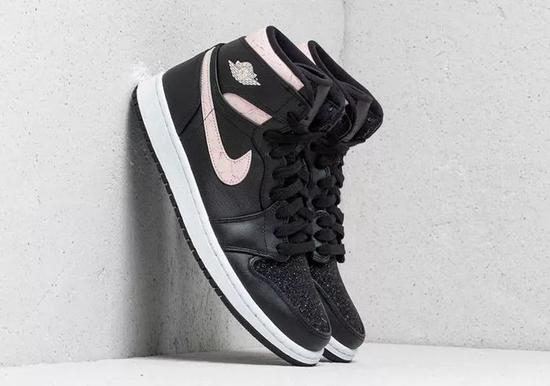 作为 2019 年开年第一双 Air Jordan 1,整双鞋采用黑粉色调为主,少见的粉色大理石纹饰 + 织绒鞋面,呈现出非常特别的气质。