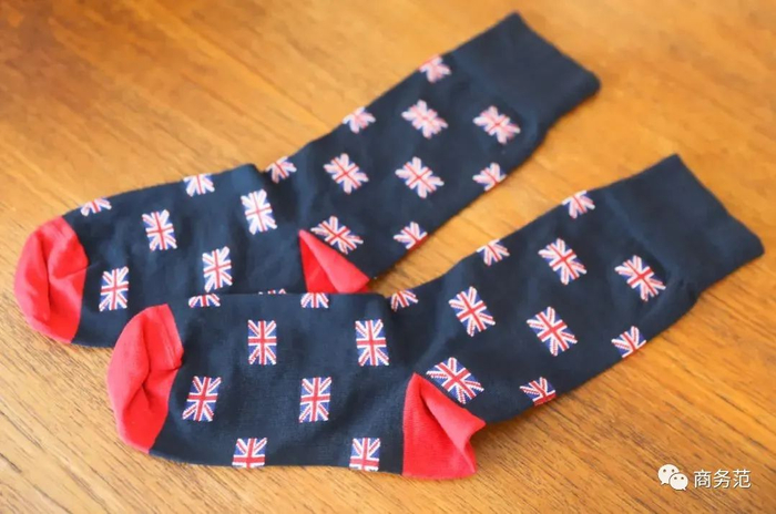 袜身上铺满了英国国旗,360°无死角,浓浓的英式范儿立刻就有了↓