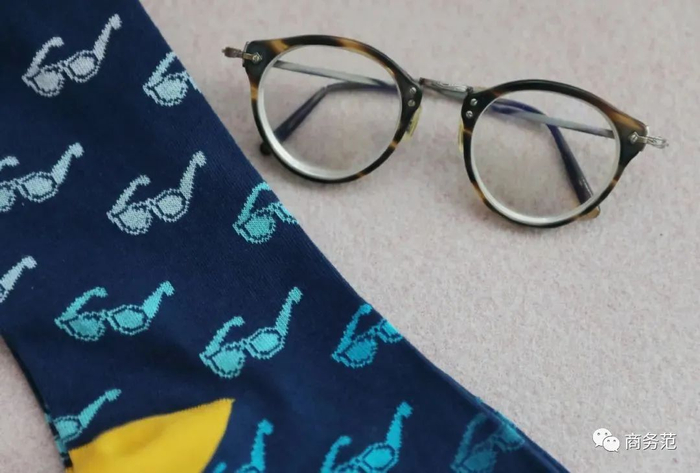 眼镜其实也是英伦绅士很爱的凹造型利器,Boy A是近视眼,所以眼镜是生活中十分重要的单品,看到这双袜子的时候就觉得一定要入↓