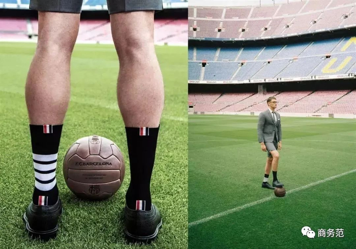 图左为梅西上脚CORGI x Thom Browne特制袜