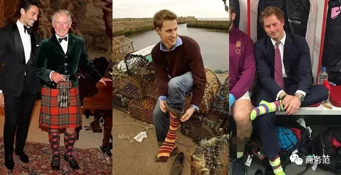 所以除了纯色袜子,有印花装点的袜子也是非常值得入手的,不仅是时尚人士喜欢,很多名人政要,平时也会离不开好看的袜子来提升魅力,比如查尔斯、威廉和哈里王子,就有不少穿花袜的装扮↓