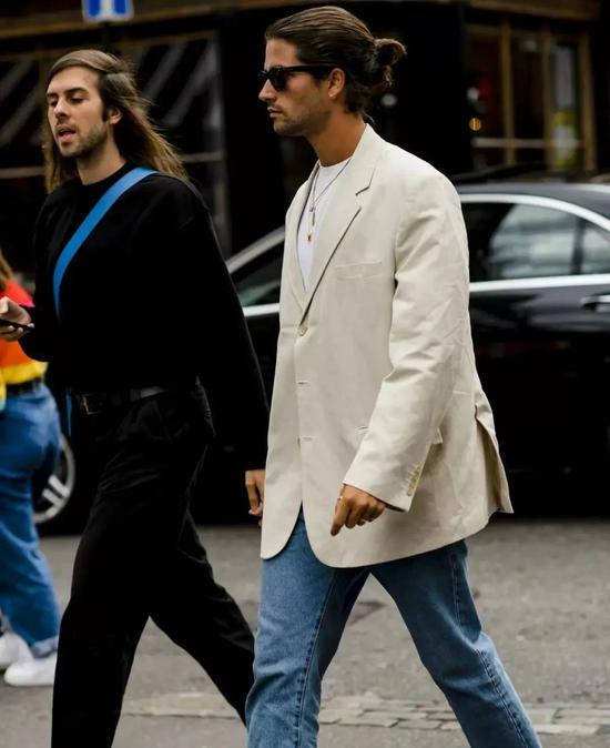 但对比起普通的外套,它又更有力量,有着西装原本的“制式感”,可以这样认为,Oversize 西装其实就是介于西装到普通夹克之间的选择,它能够在你穿腻一般外套后,又不想被传统西装限制的时候解放你。