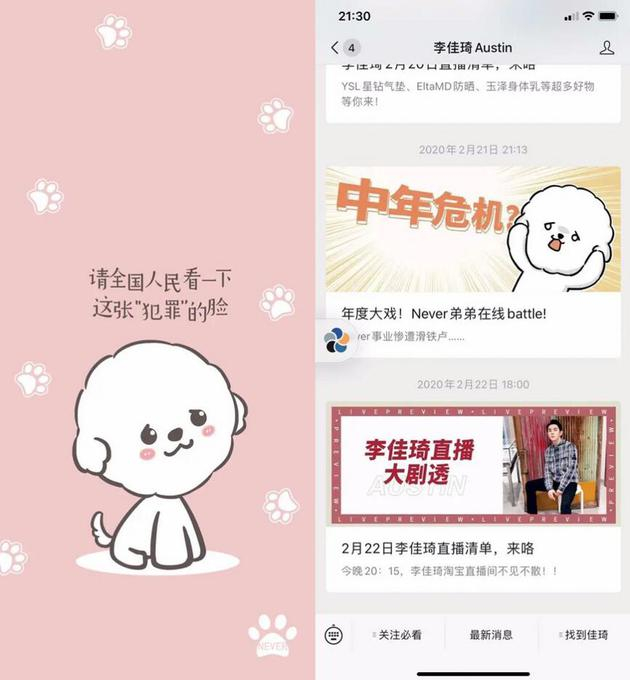 李佳琦说自己压力大时或是每次直播结束都会逗逗狗,他说一直支撑他的一分部力量就是来源于Never一大家子,回过头来看无论多累,自己在外面受了多大的委屈和不公,看到它们一切都变得不是那么重要。