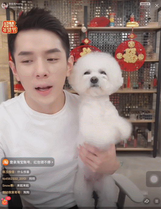 然而最近除了种草他带货的口红护肤品零食,大家又盯上了他的狗子……