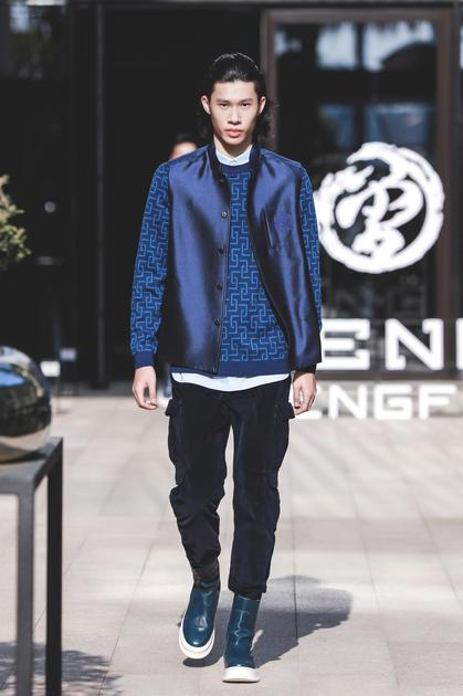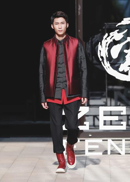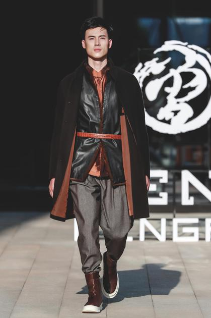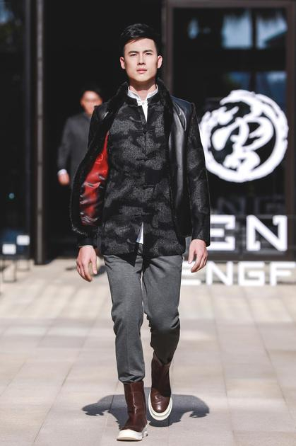 在图腾上,本季系列的服装舍弃了具象的中国元素视觉符号,而用一种高度写意的中式语言编织着人与生活,简约到极致的外型下暗含实用主义的强烈主张,如贴身的口袋不张扬又满足行旅生活所需。使用高科技透气保暖、排汗舒适、易保养的高科技面料是这一系列的显著特征。在色彩上,碰撞中寻求和谐,东西方文化在不断的摩擦碰撞中升华,以黑白灰为基调,让平和、沉稳的褐色系,神秘的蓝色系、吉祥的中国红来演绎这含蓄的智慧。