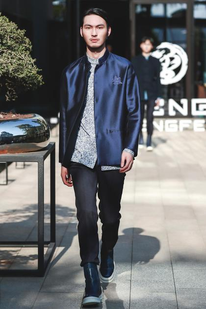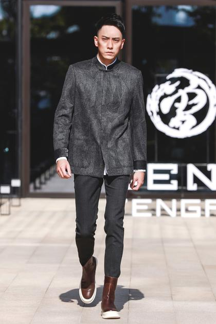 设计风格上延续品牌一贯的现代中式风格定位,男装为主,女装为辅,在款式细节、结构造型、图形图案、色彩趋势、面料创新等方面都力求回归服装本身,提升服装穿着舒适、自然,重在对服装结构、面料创新的研究。将传统中国元素主旋律和谐而富有节奏的融入于本季服装系列设计中,深化品牌内涵。