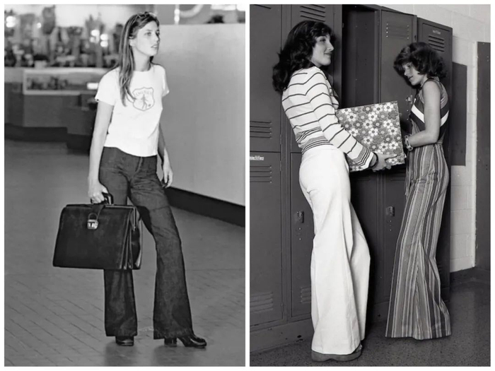这种有点拖拖拉拉、慵慵懒懒的裤装,还是因为70年代波西米亚风盛行才火起来的。过去Jane Birkin,就穿过许多拽地裤。