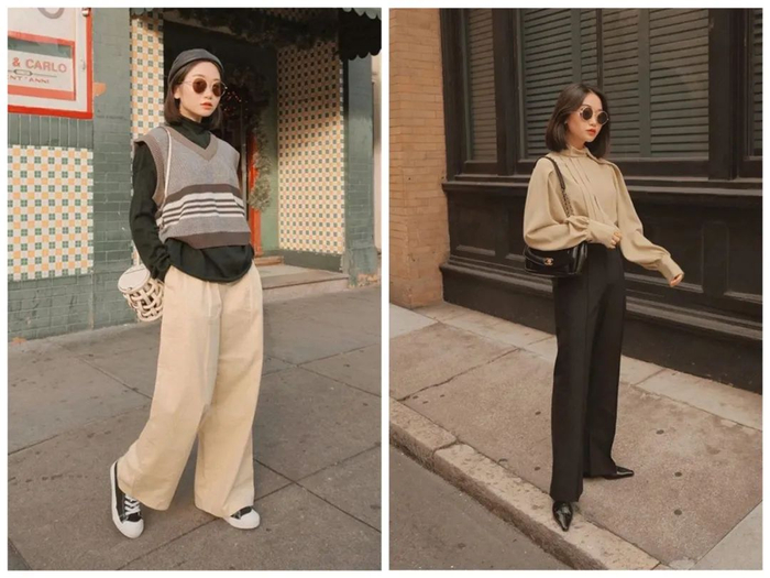 举个简单的栗子,如果你的衣橱里,上衣以基础款、基础色为主,那么一条彩色阔腿裤对于你,反而成了一件百搭且能提升时髦度的单品,是完全值得入手的👇。