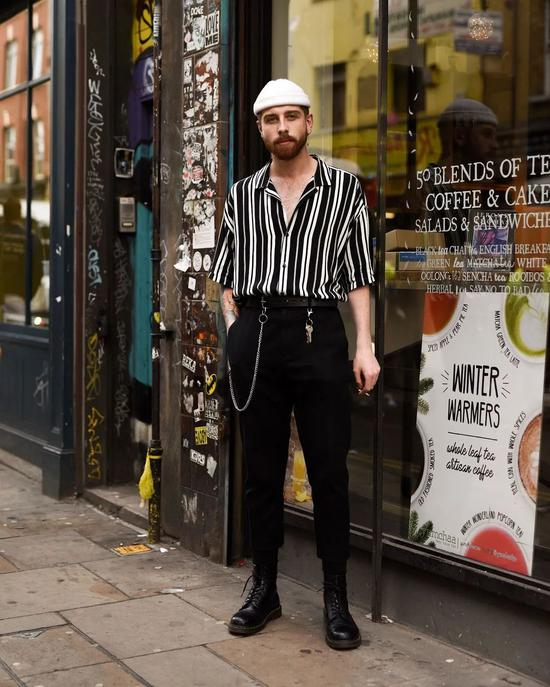 还有在 City Boy 的造型中,细条纹长衬衫也是经常出现的风格单品。