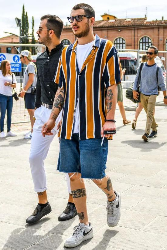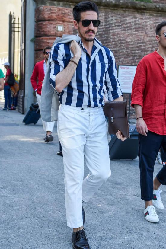 到具体的条纹单品上,很显然,任何一个男人在夏天都不应该错过 条纹衬衫。