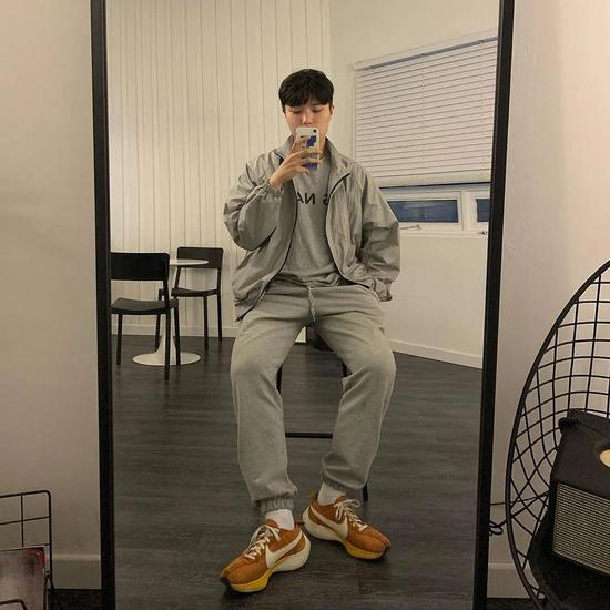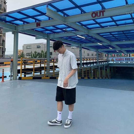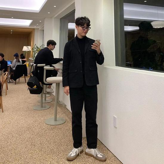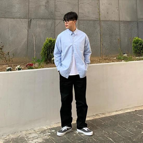 好看的穿搭照,除了造型搭配背景同样十分重要。这位博主日常衣服偏向简约风格,所以他找了很多简洁墙面,整体氛围很搭。