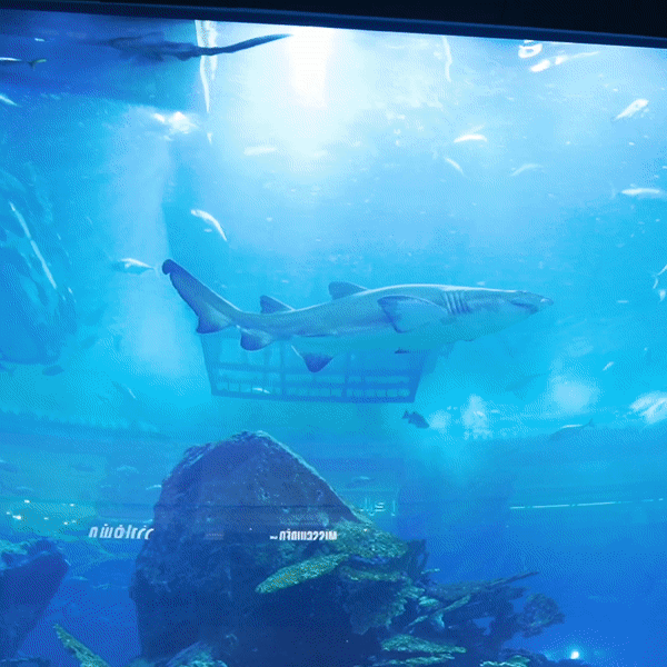迪拜聚集了世界上无数个“第一”,不仅有世界上最高的摩天大楼,还有世界上最大的室内主题公园、全球最大的购物中心等等。迪拜购物中心有个世界最大的鱼缸(其实是水族箱),是全球最大的室内水族馆之一,拥有吉尼斯世界纪录认定的“全世界最大的水族馆观赏幕墙”。其蓄水量达1千万升,拥有超过3.3万只海洋动物和世界规模最大的虎头鲨群。