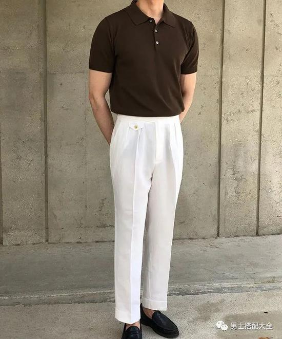 Polo 衫不再是老气的代名词,选择件polo衫 和卡其裤与之搭配经典又好看,再搭配着带有绅士感的乐福鞋,使整体散发文艺气息。