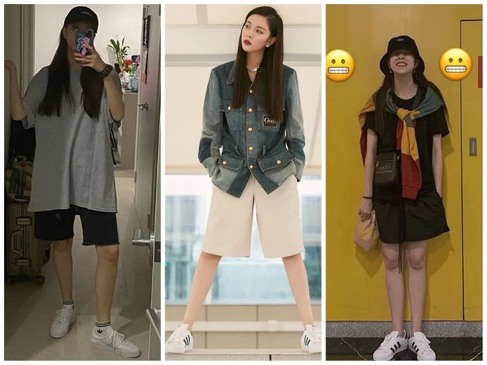 连我最近路转粉的沈梦辰同学,也一口气贡献了5组百慕大短裤look!