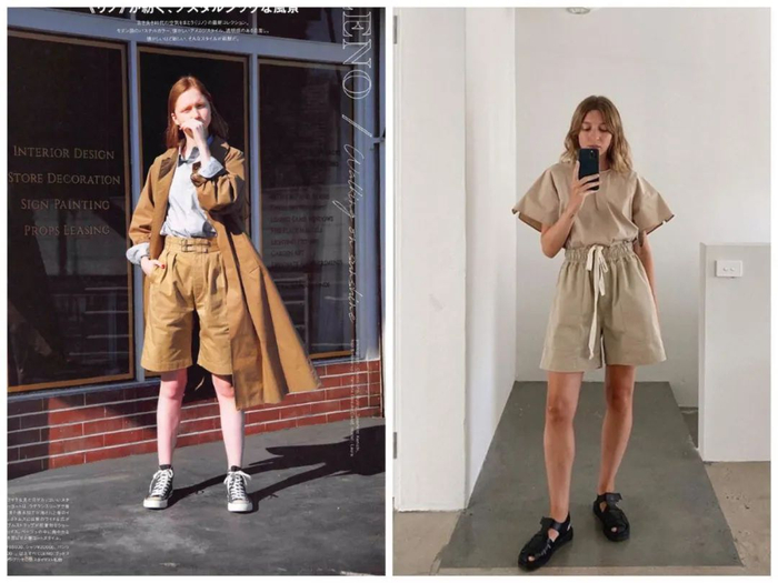 担心不够有质感,选择织物密度高的材质即可。日杂今年出了好多米色亚麻短裤look,搭配清爽的条纹、印花衬衫度很好看。