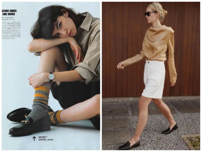 乐福、牛津、布洛克,非常boyish,非常英伦。怕冷的还可以配中筒袜,也是今年流行的穿法。
