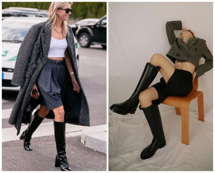 此外,许多时尚博主还会用长靴来搭。