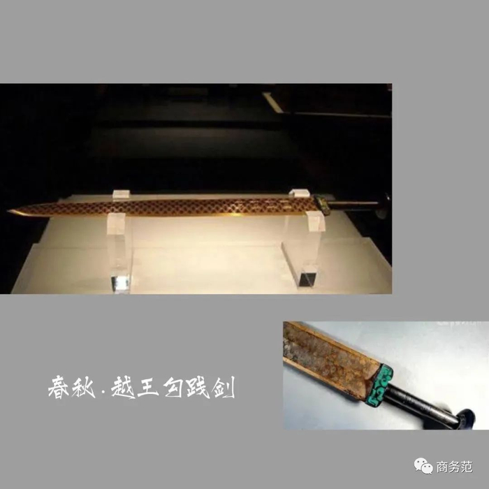喜好铸剑的越王勾践,在剑柄上镶嵌了贵族专用的绿松石,千年不朽,华贵无比。