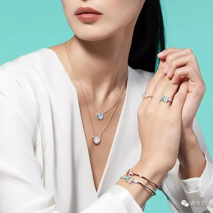 作为Tiffany灵魂色和muse,品牌设计了很多绿松石珠宝。牌子君比较推荐Tiffany T 系列这款白金手镯,官网价格是29300元,两端分别是天蓝色绿松石和密镶钻石,戴上后会是简洁着装的点睛之笔,清冷有气质。
