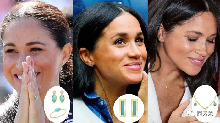 梅根则比较喜欢戴小件首饰,她生子前后,经常佩戴绿松石耳饰和戒指,很多治疗师认为绿松石的镇定、治愈作用十分适合新手妈妈。她的珠宝都来自Jennifer Meyer,千元级的价格也蛮亲民的。