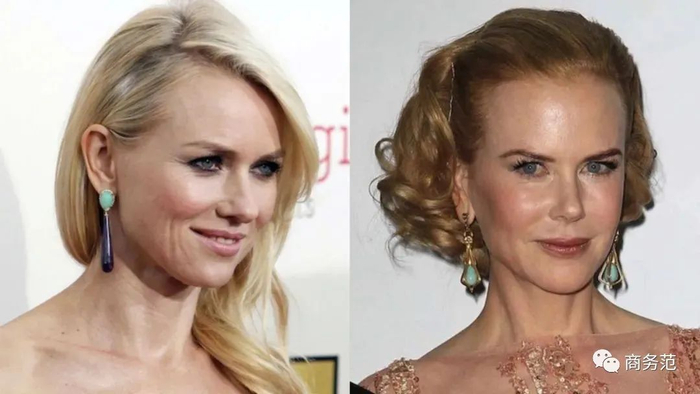 二级三级绿松石的大多属于绿蓝、蓝绿色系,光泽、质地都不错。娜奥米·沃茨和妮可·基德曼曾经戴过的Fred Leighton耳环,颜色偏绿,应该属于这一类别。