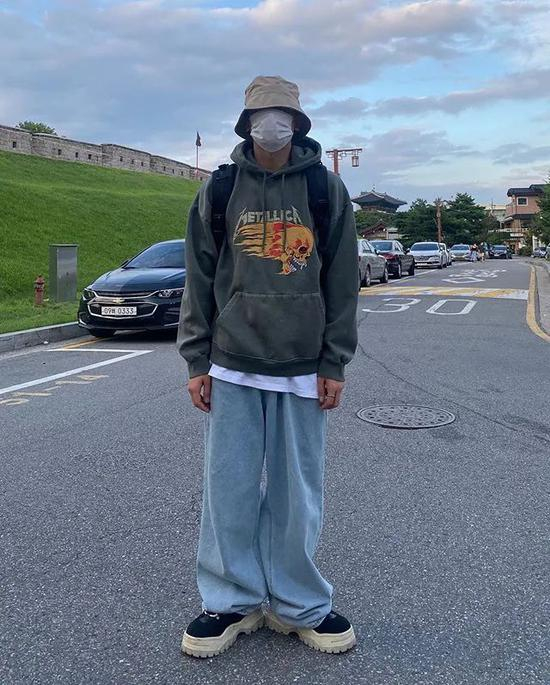 卫衣需为oversize款,才显得比较嘻哈帅气,不然就会变得很正式很英伦。且衬衫也要选比卫衣长的,露出来才能凸显出层次感。(⚠️ 不过矮个子要慎重哦)