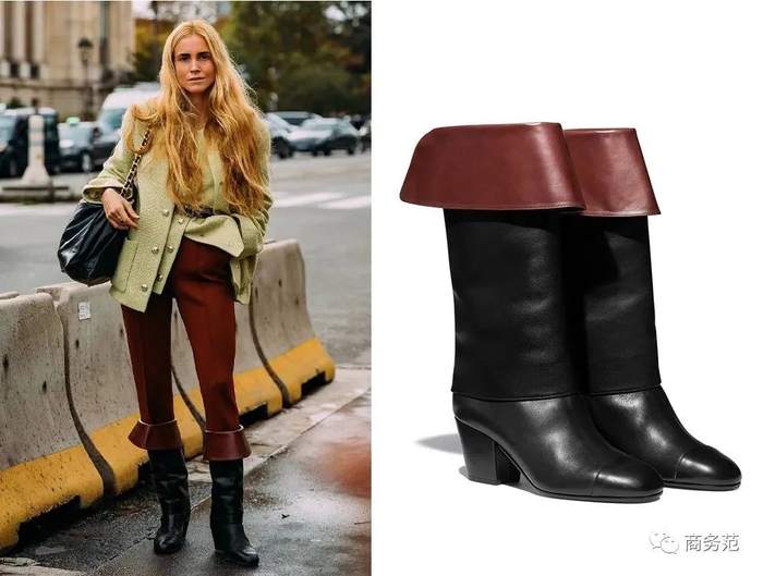 最近,Chanel这款靴子很火,好多明星都在穿,它来自品牌2020秋冬秀场,是为了致敬老佛爷推出的,这双靴子具有Chanel经典的黑红双色设计和马术风格,充满复古味道。