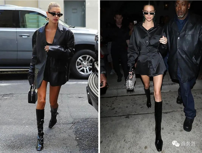 膝下靴也是这两年很受欢迎的一个靴子款式,它尤其适合秋冬季节,靴筒长很保暖,可以光腿穿,尤其适合下衣失踪穿法的时候搭配,Kendall、Bella就经常这么穿,整体会凸显腿部线条,显高,风格比较性感。