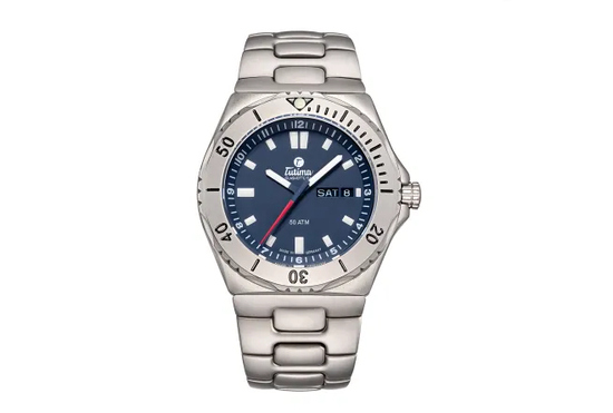 单向旋转表圈设计,加上银色夜光指针和时刻,300米深度防水,无论是水上运动或日常佩戴都适合。适合爱运动时尚的朋友。