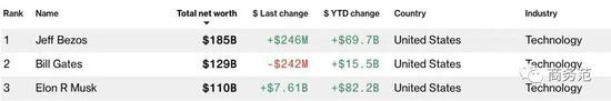 虽然扎克伯格被挤出了前三,但霸占全球富豪榜的前三名的贝佐斯、比尔·盖茨和马斯克,依然都来自科技领域。