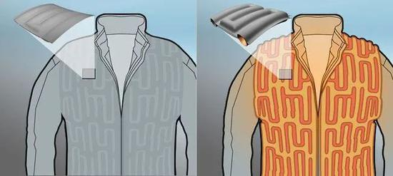 说说这个内胆的原理:使用通道式设计(作用是分割气囊使其更贴合身体曲线)的Airvantage充气内胆能够通过调节通道内气体的容量,利用静止空气能够高度有效绝缘和隔离的特性,来减少着装者的热量损失,让使用者自行对衣物的保温性和散热性进行调控,从而达到调整整件衣服的保温性能的目的。