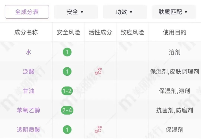 主打成分B5也叫泛醇(泛酸的醇类衍生物),具有良好的吸水保湿能力,小分子的B5可以渗透角质层内,抓住角质层内部水分,防止皮肤内部水分流失。