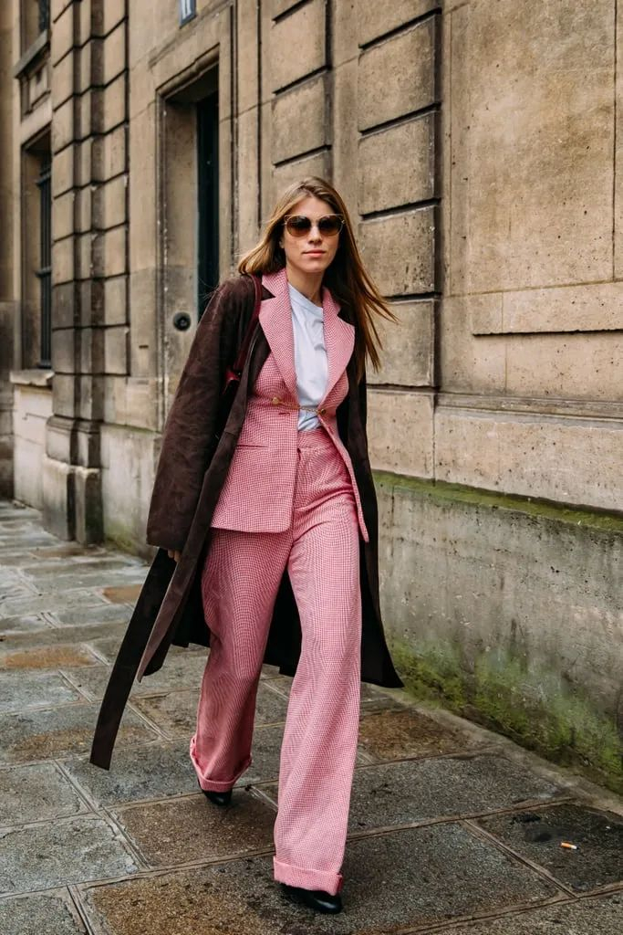 想穿出这种气质,阔腿裤要选全长的,最好稍微盖住脚面,但又不会拖地。