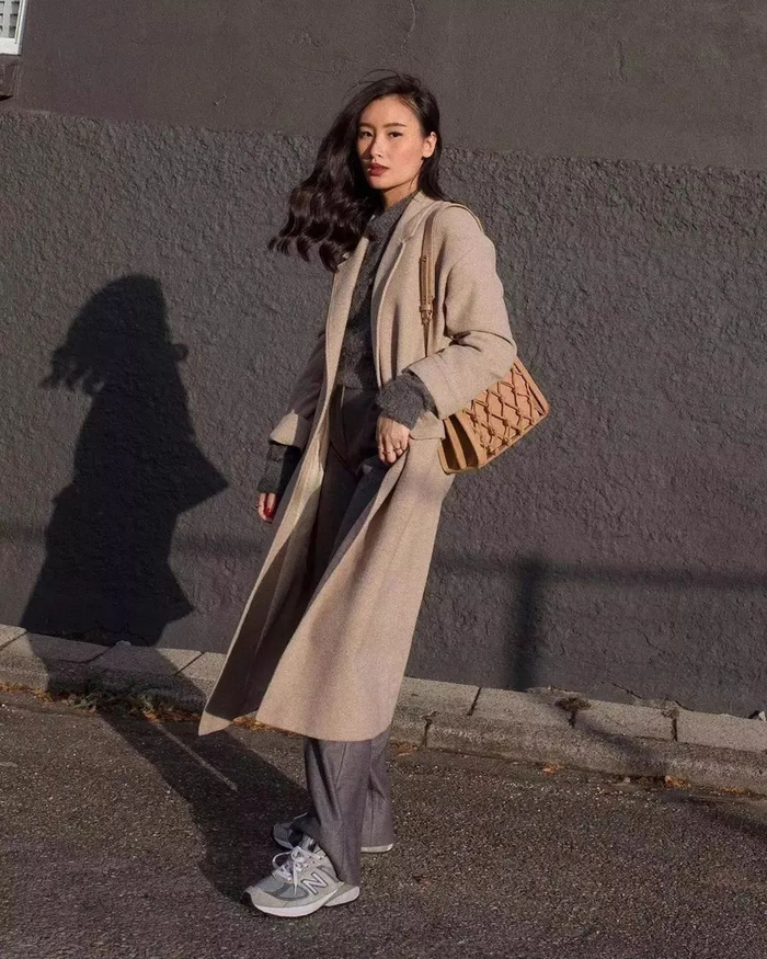 超长大衣+长阔腿裤+老爹鞋,记住这个组合,保暖、舒服,还很帅气。